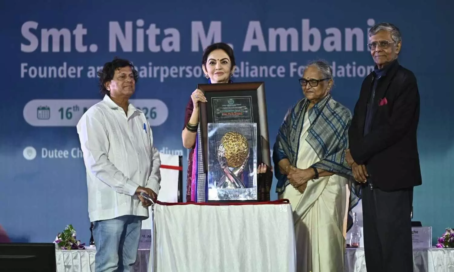 In his welcome speech, Dr. Samanta said, Success doesn’t mean achieving things only for yourself; true success is bringing light into the lives of others.” Giving example of Nita Ambani he said, Great initiatives never go in vain if you try with dedication. He praised Nita for her multi-dimensional social work, for which she is loved and respected by one and all. In this materialistic world, earning love and respect is not easy.