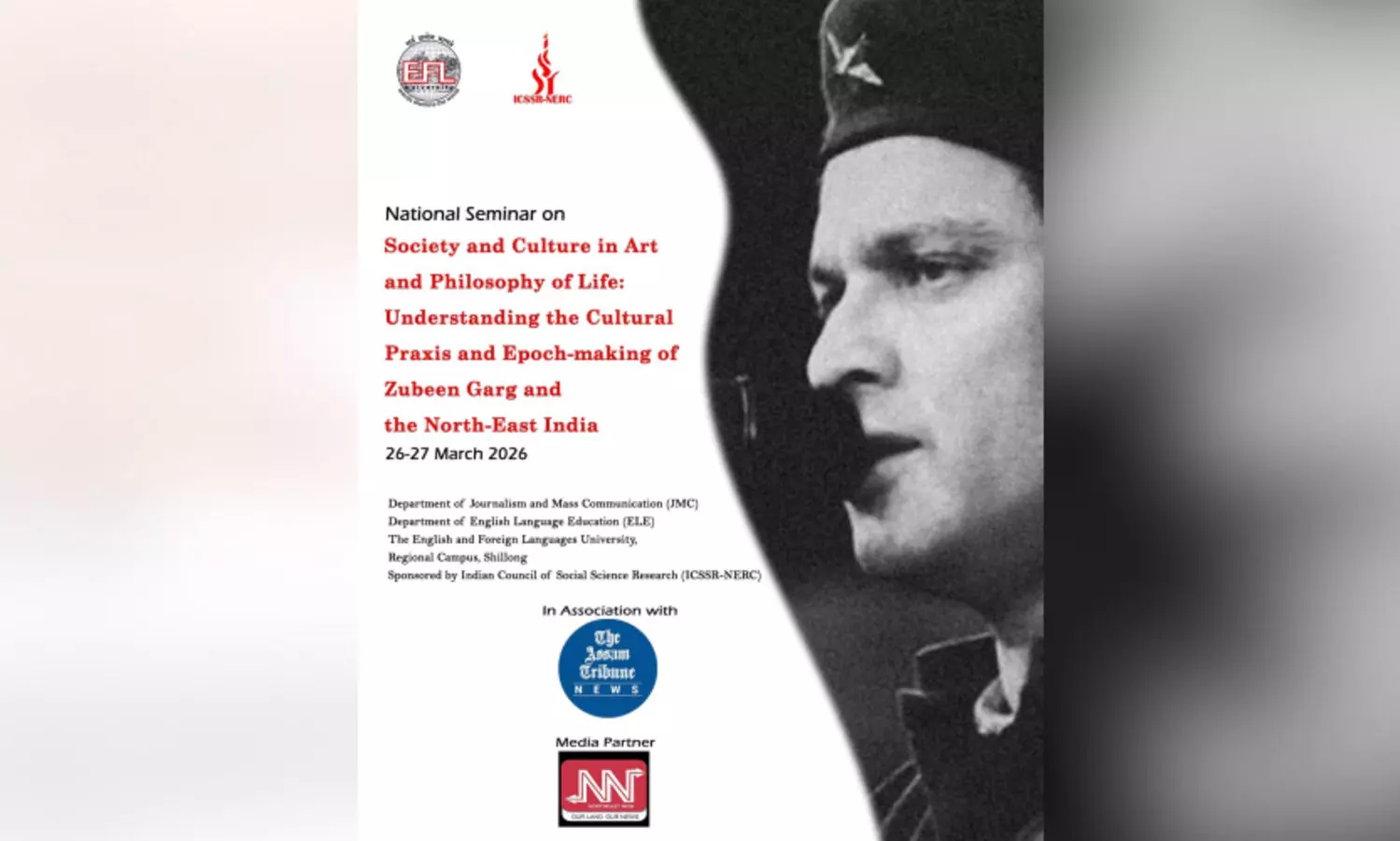 On 26–27 March 2026, the Department of Journalism & Mass Communication and English Language Education at the English and Foreign Languages University host an ICSSR NERC-sponsored National Seminar titled “Society and Culture in Art and Philosophy of Life: Understanding the Cultural Praxis and Epoch-making of Zubeen Garg and the North-East India”. Conceived as more than an academic exercise, the seminar opens up a dynamic space where art meets analysis, and lived experience intersects with critical thought.