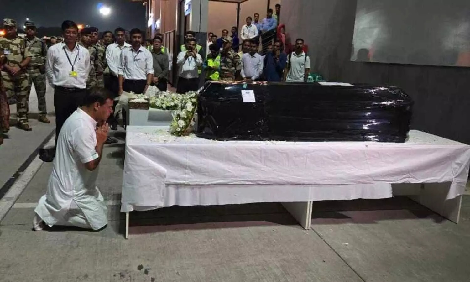 CM Sarma receiving Zubeen Garg's mortal remains in New Delhi. (Photo: @himantabiswa/x)