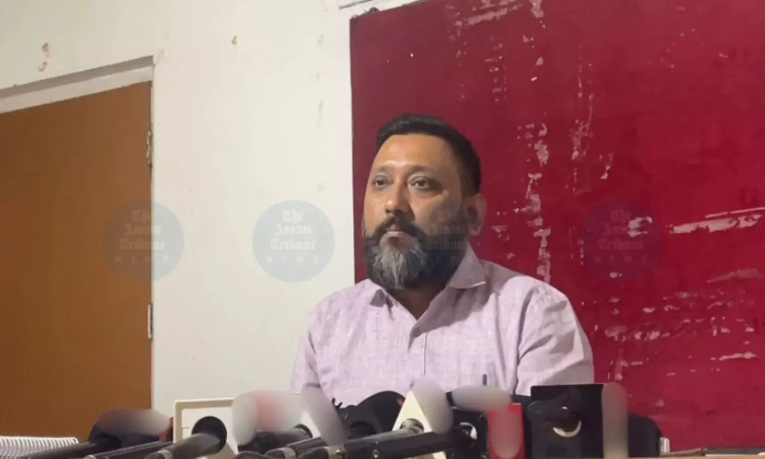 Manas Pratim Baruah, Admin, Fight Against Injustice of APSC, addressing a press meet on Saturday (Photo: AT)