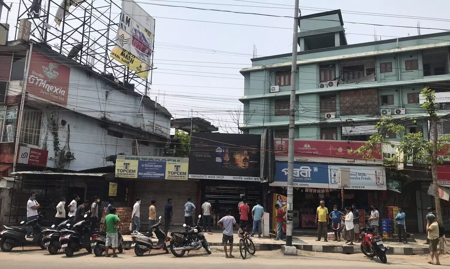 A file image of customers lined up in front of a wine store in Guwahati. (Photo:@rohit_tezpur/X)
