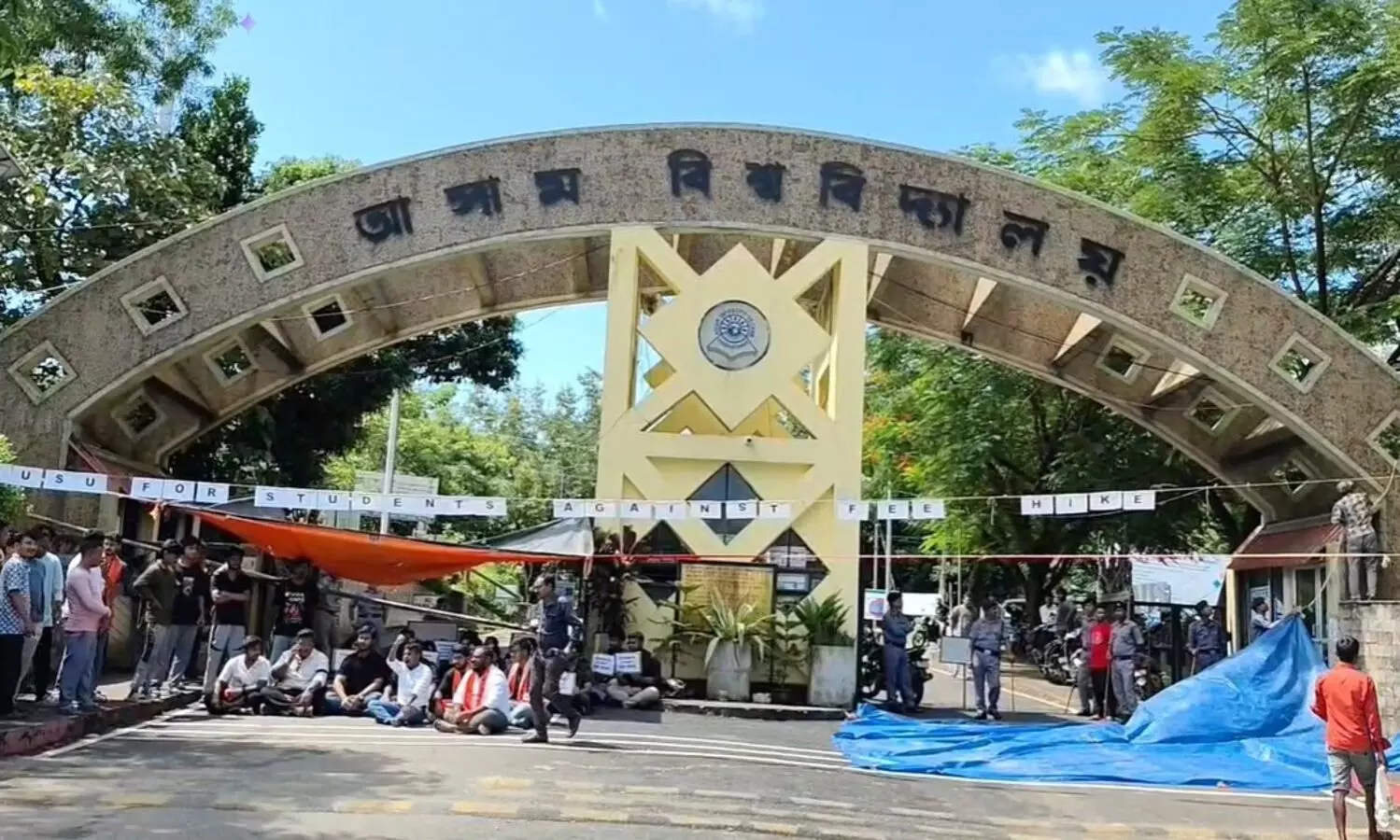 Silchar, July 30: Hundreds of students at Assam University, Silchar, launched a massive protest on Wednesday against a sharp hike in tuition fees for Undergraduate, Postgraduate, and Integrated courses.