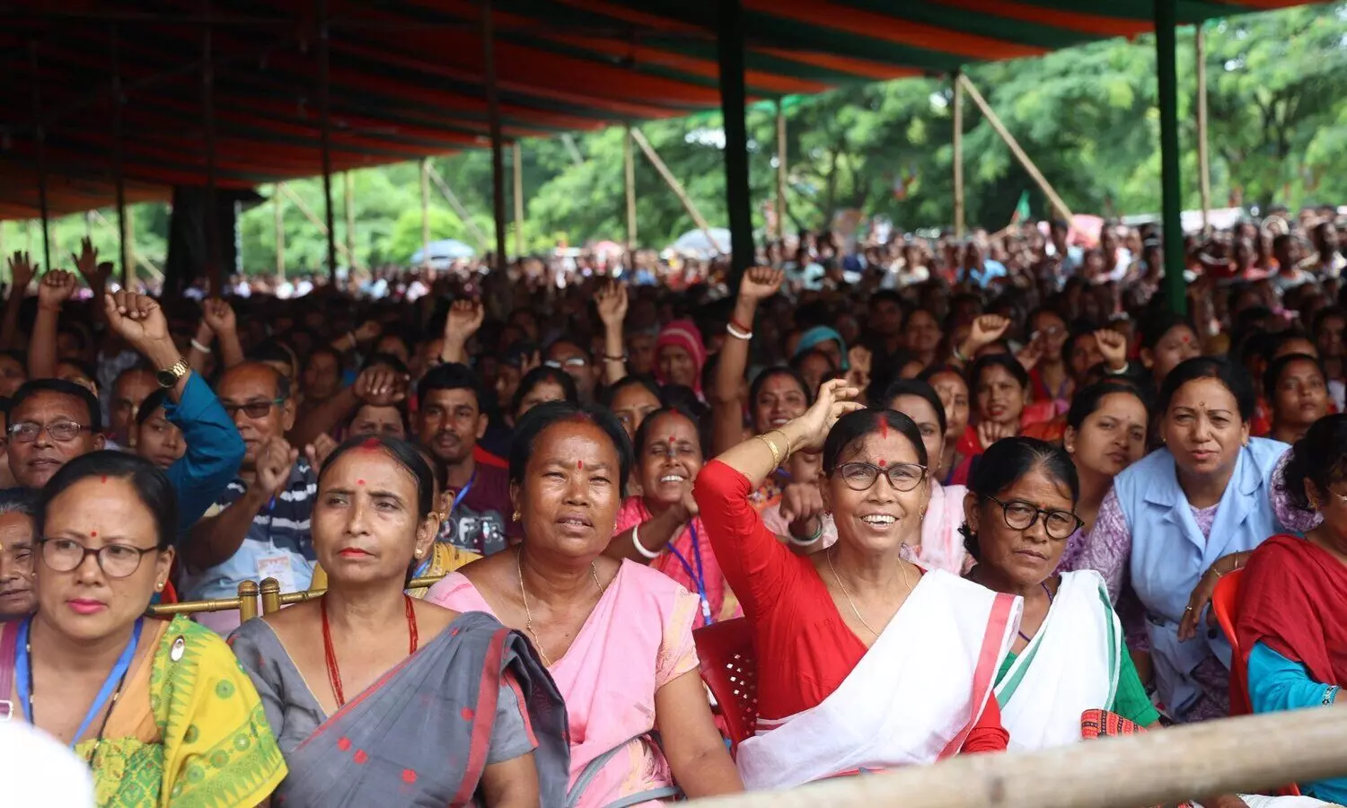 Attendees at a campaign rally in the BTR ahead of BTC polls (Photo - @himantabiswa / X)