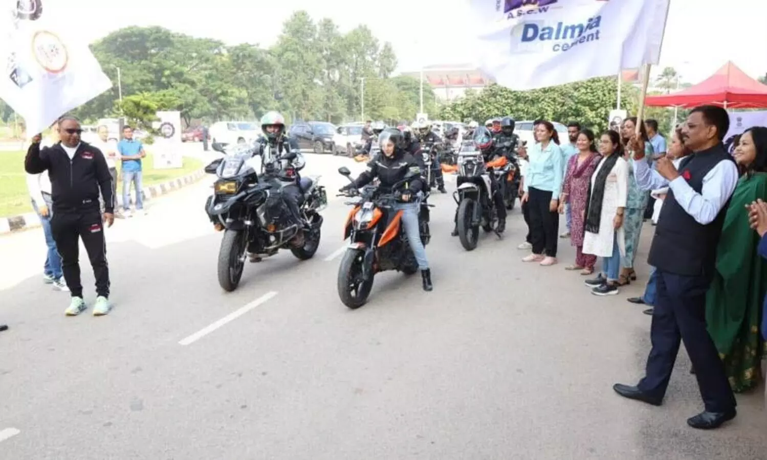 The bike rally flagged off by the Chief Secretary in Guwahati, on Wednesday. (Photo:@CSAssam_/X)