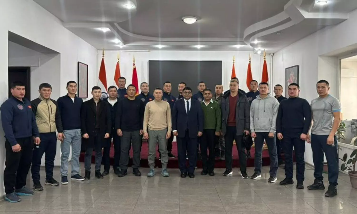 The 20-member team of the Kyrgyz Armed Forces participating in the joint drill. (Photo:@IndiaInKyrgyz/X)