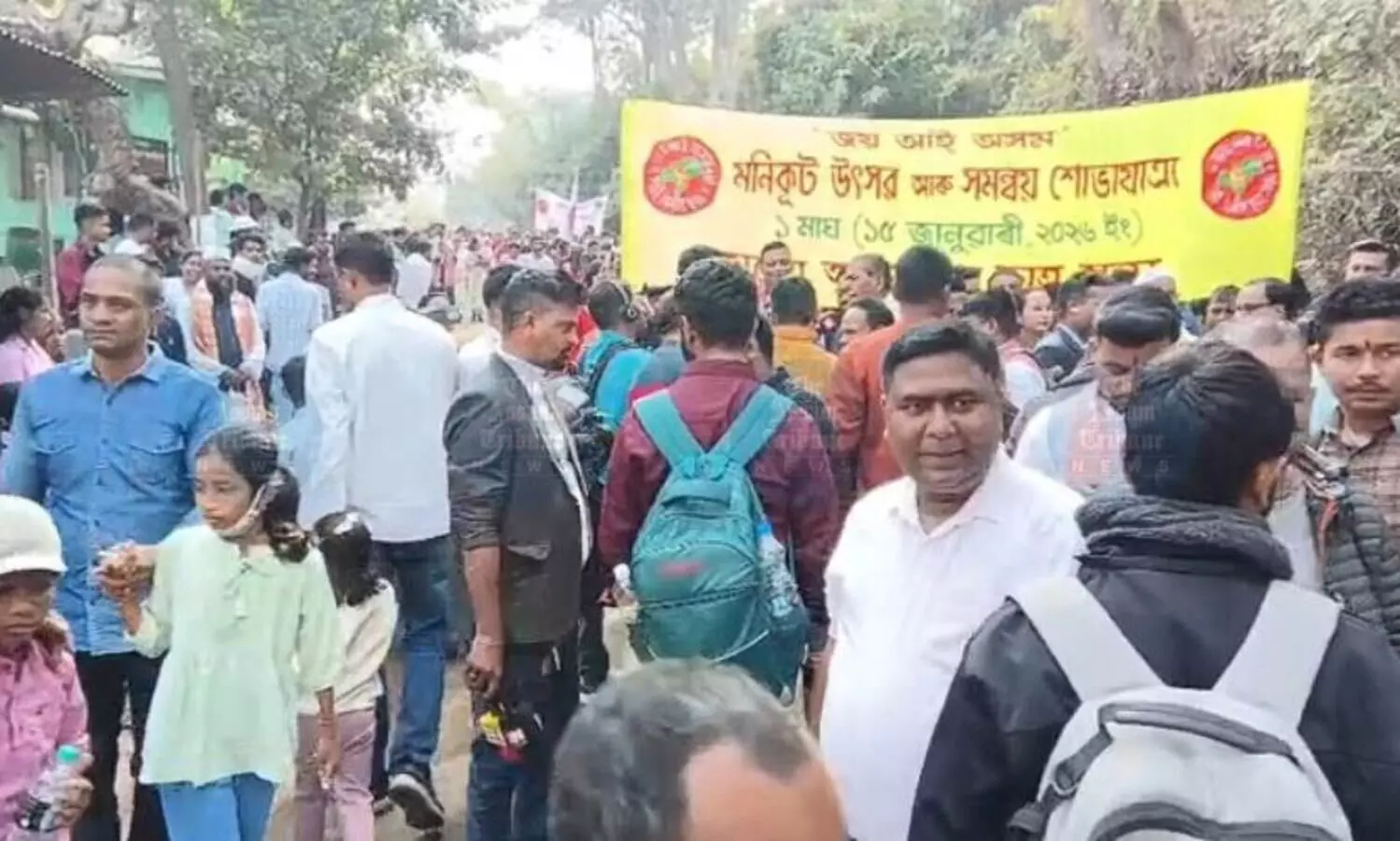 Nalbari, Jan 15: The historic pilgrimage town of Hajo came alive on Thursday as it hosted the vibrant Manikoot Festival and a colourful 'Sammanoy Xobhayatra' (Harmony Rally) organised by the Hajo Anchalik Students’ Union, reaffirming the town’s age-old legacy of communal coexistence.