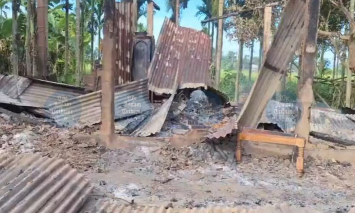 An image of a house burnt in Tengatol village by Naga miscreants. (AT photo)