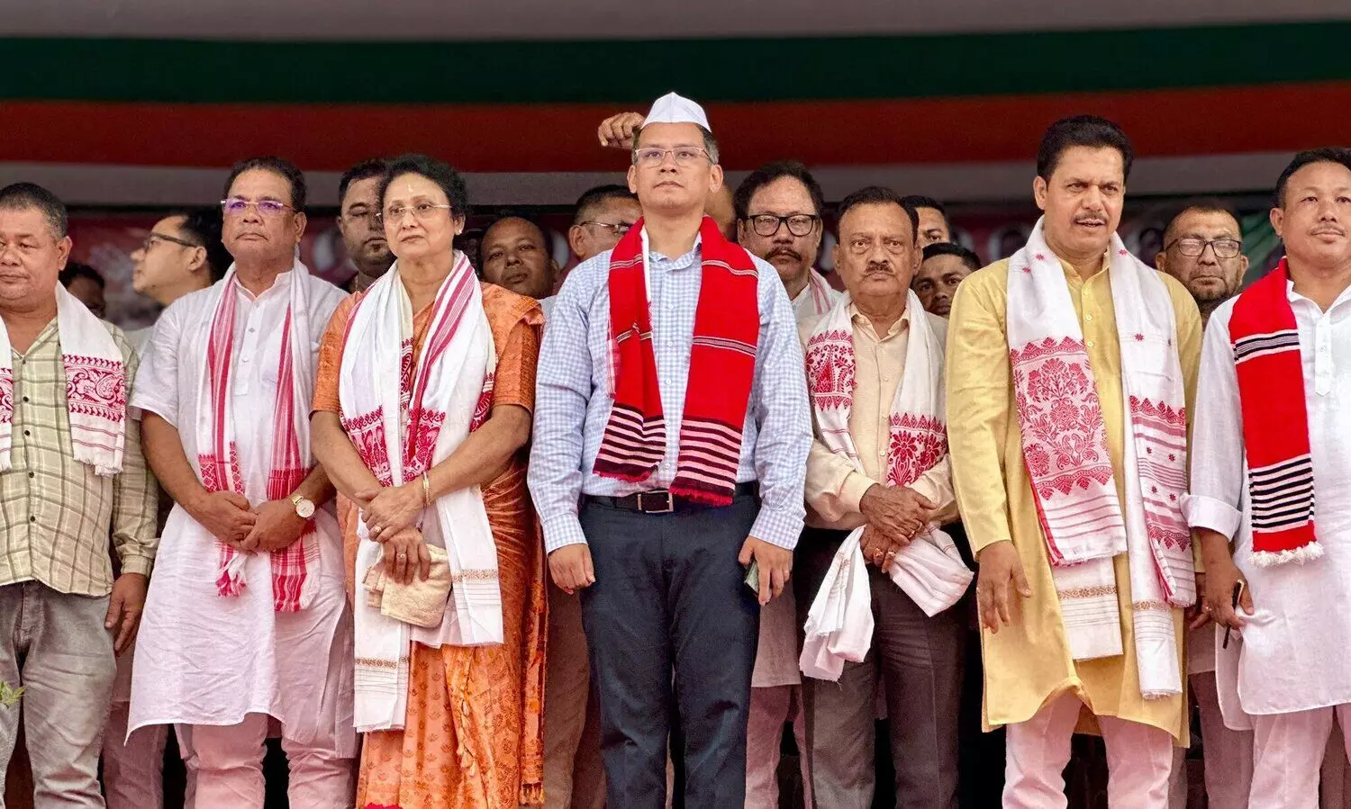 A file image of Gaurav Gogoi with other Congress leaders in Lakhimpur. (Photo:@GauravGogoiAsm/X)