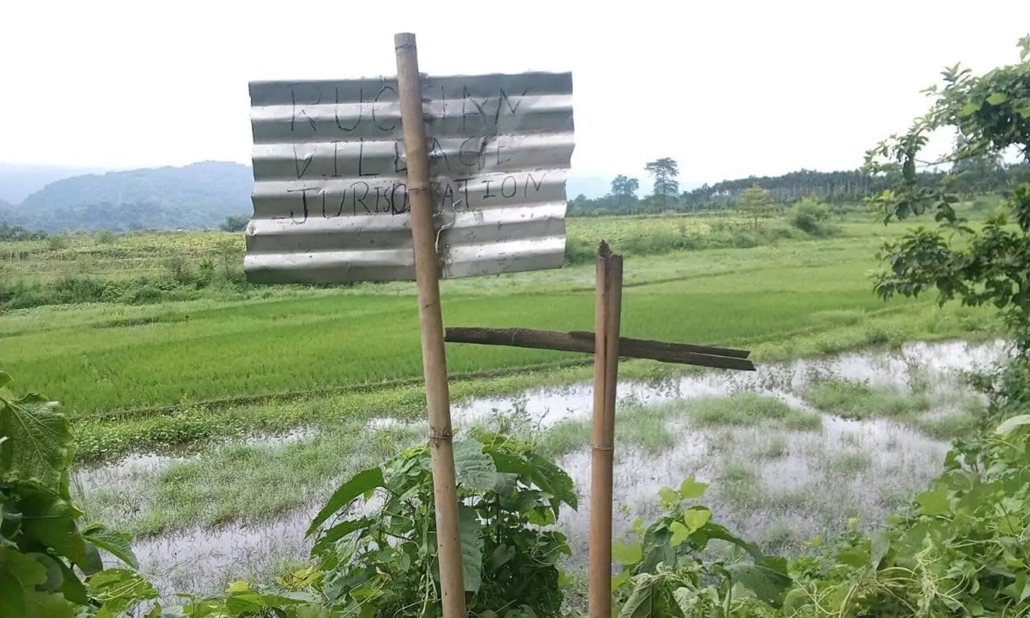 Earlier, boundary markers and signage displaying “Ruchan village jurisdiction Wokha (Lotha)” appear in Uriamghat (AT Photo)