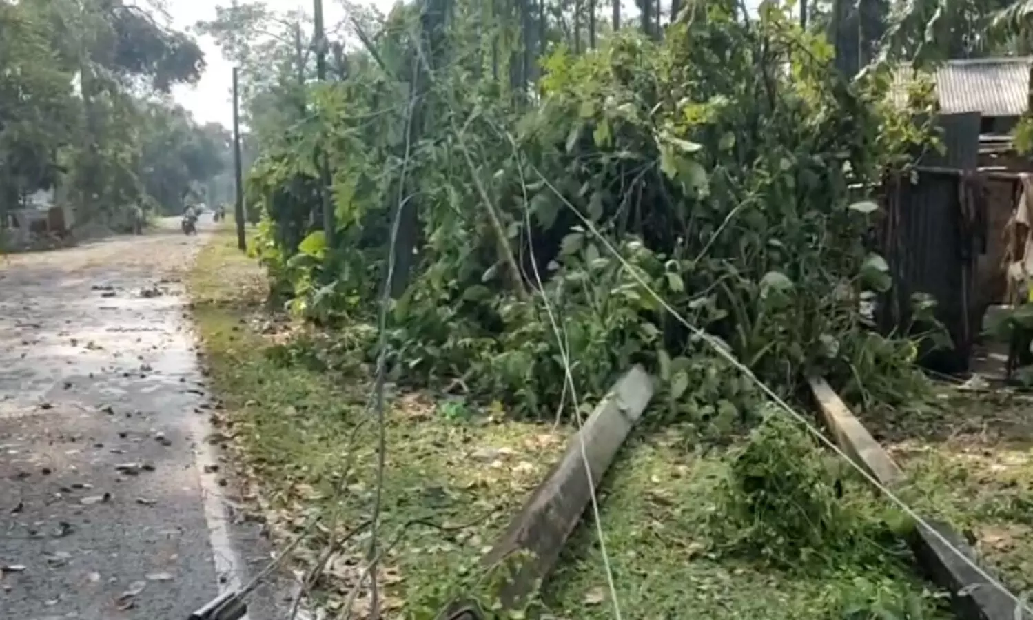 Houses were damaged in the disaster as trees came crashing down, leading to significant structural damage. The road connecting the two affected villages was blocked by fallen trees, severely disrupting traffic flow.