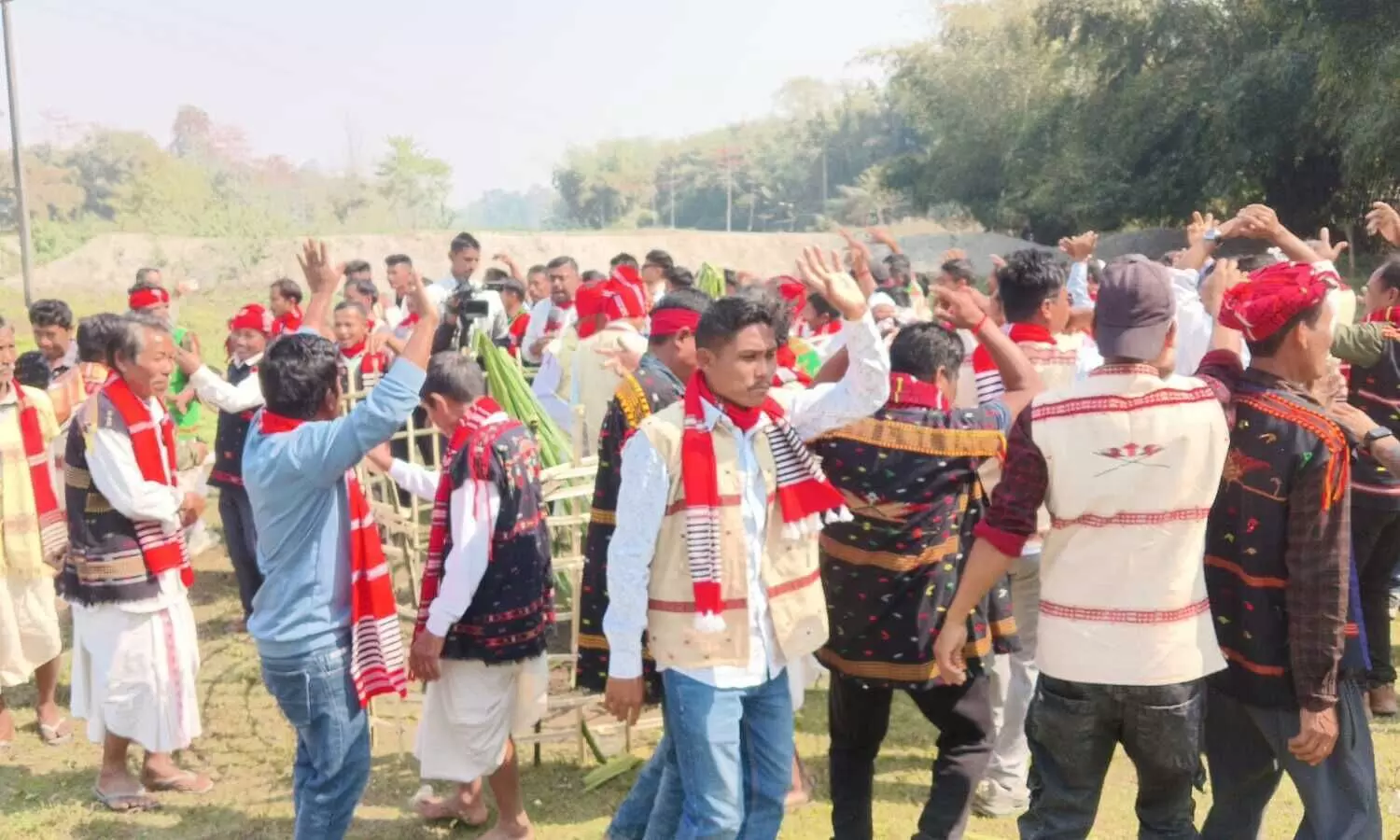 From early morning the Mising settlement areas witnessed a festive atmosphere as the rhythmic beats of traditional drums and melodious folk songs echoed across the villages.