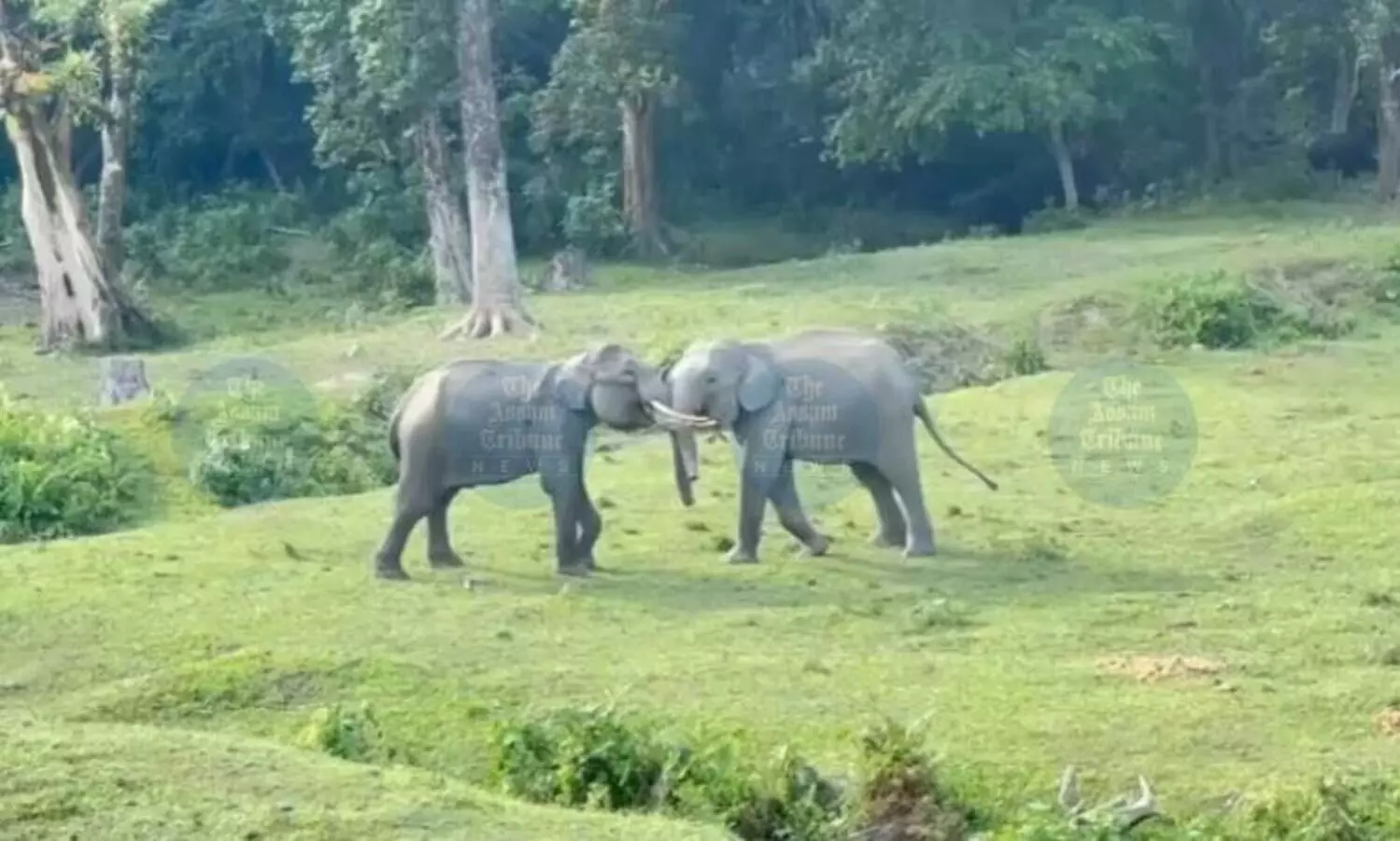 An image of two elephants playing in Manas National Park. (AT Photo)