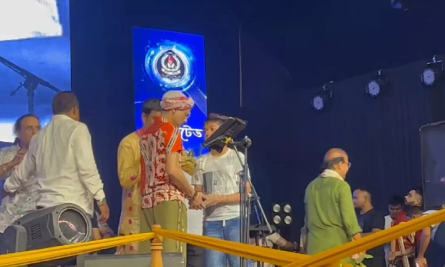 During a function held in the Kenduguri area of Pathsala town organised by ‘Unite Club’, a child offered a plant sapling to Zubeen Garg.