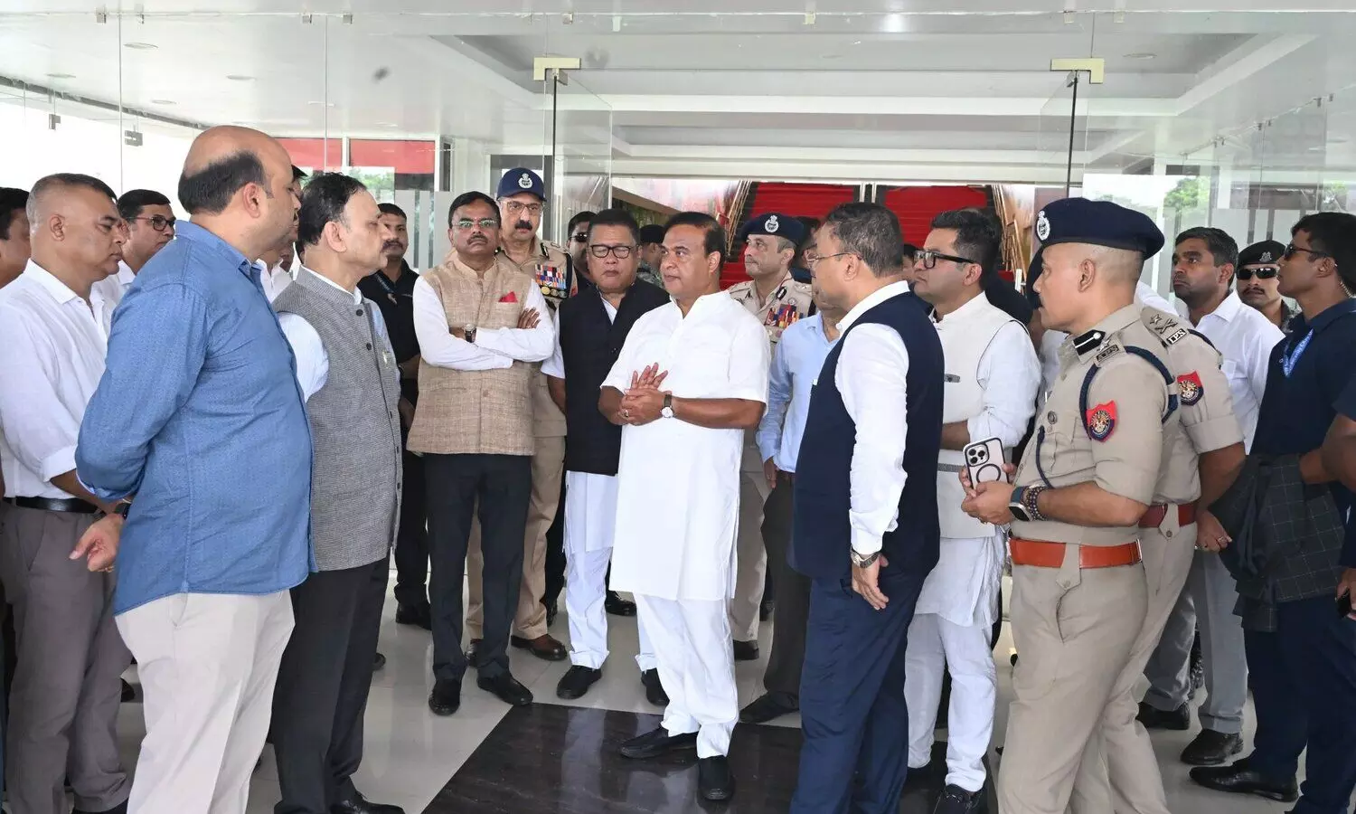 Image of CM Himanta Biswa Sarma inspecting arrangements at Sarusajai Stadium (Photo: @himantabiswa/x)