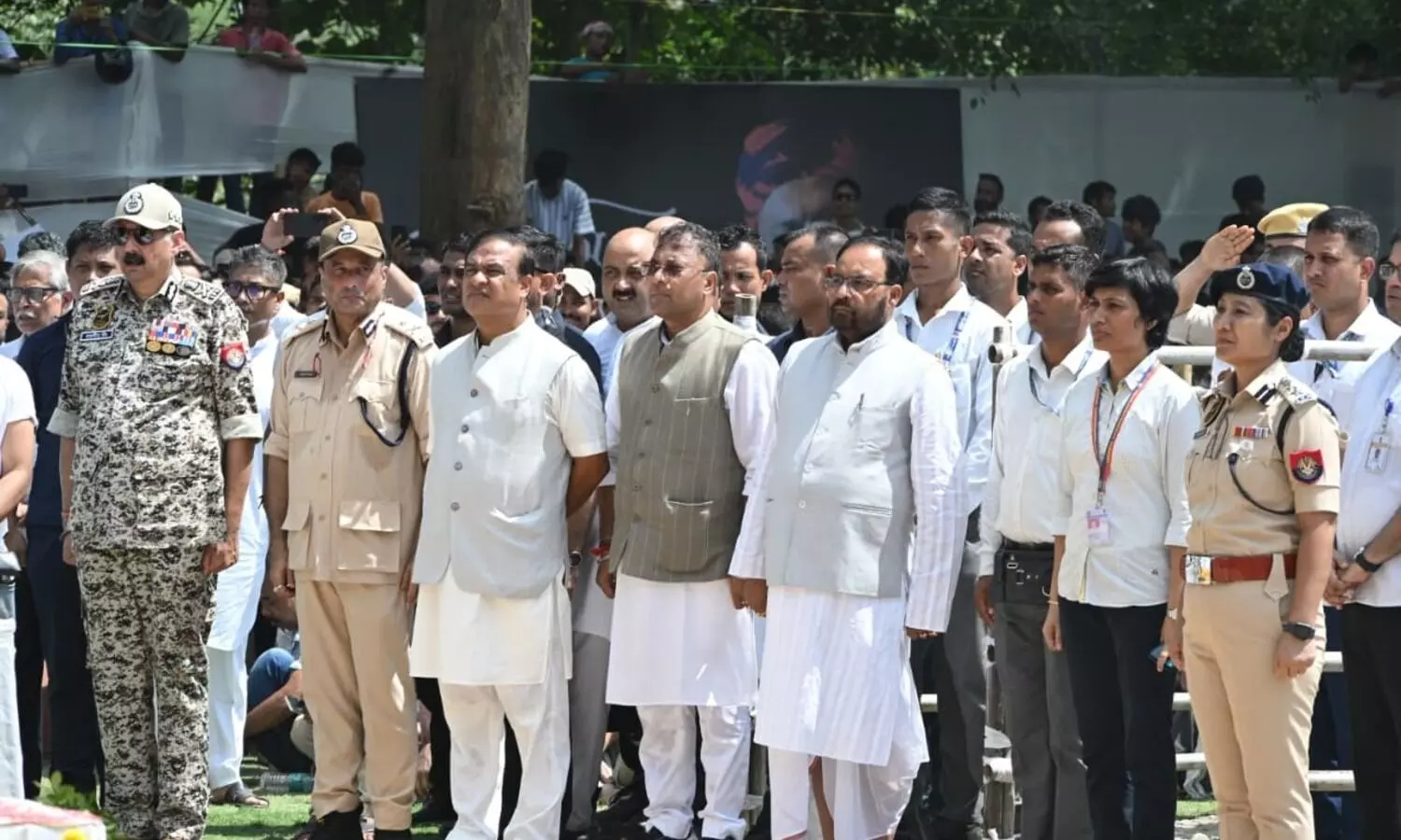 Himanta Biswa Sarma with ministers and police officials at the funeral of Zubeen Garg (Photo - @himantabiswa / X)