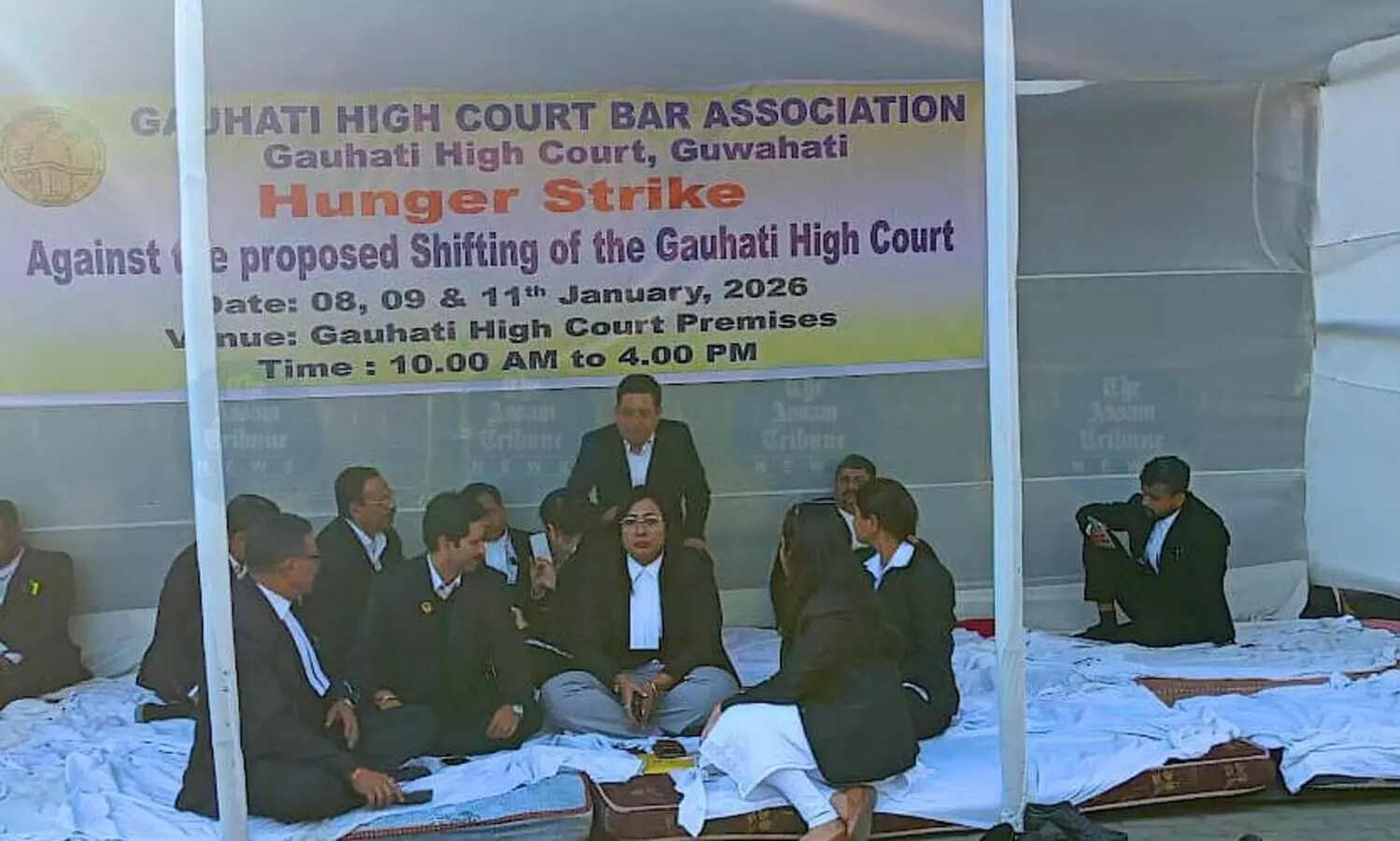 The hunger strike is part of a series of demonstrations staged by GHCBA members against the move. Earlier, on Thursday and Friday, advocates held a four-hour hunger strike in front of the old Gauhati High Court building.