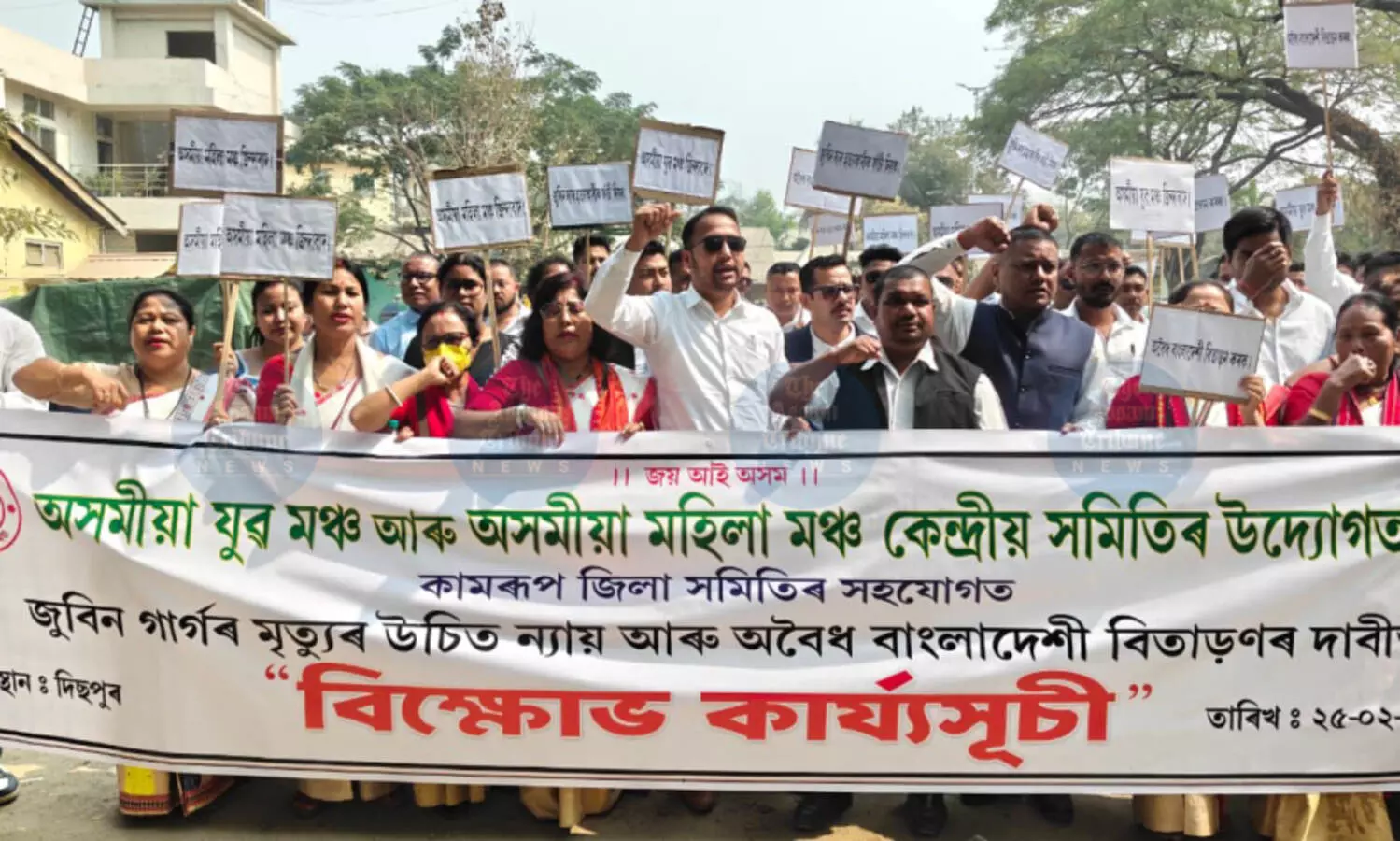 Protesters also raised slogans against alleged political interference in the case. Some participants reiterated separate demands for sealing the Indo-Bangladesh border and deporting illegal Bangladeshi nationals from the state.
