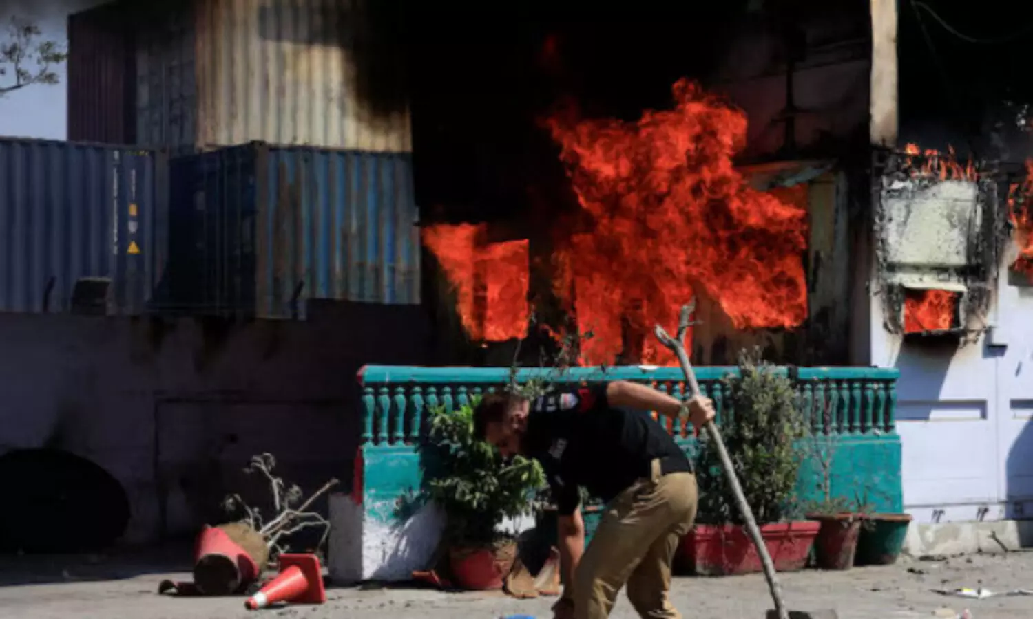 Visuals circulating on social media showed doors and windows of the US Consulate in Karachi smashed and set on fire, and chaotic scenes outside the consulate premises, with demonstrators damaging property and clashing with security personnel.