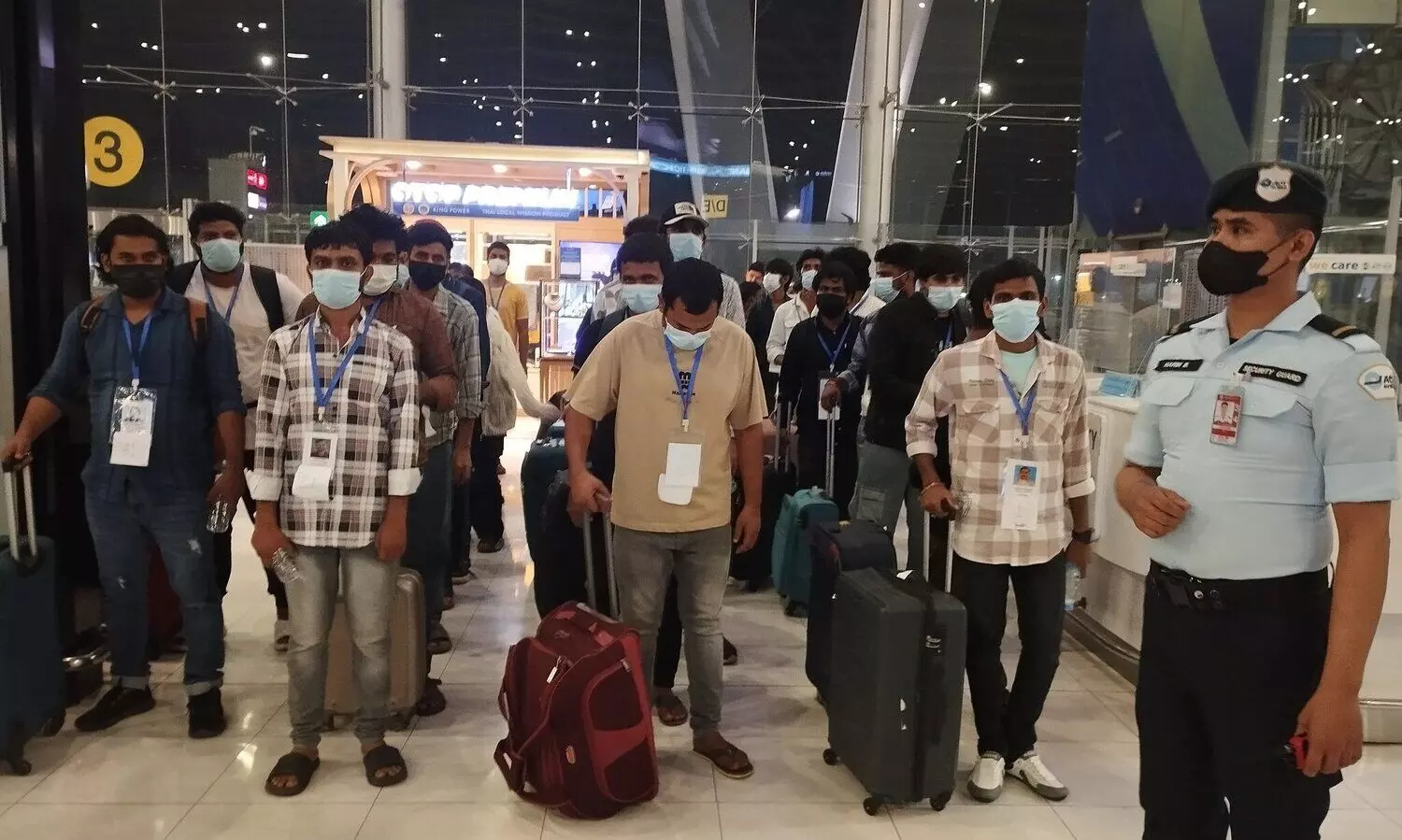 Indian nationals, victims of cyber scam slavery at the airport. (Photo: @IndiainMyanmar/X)
