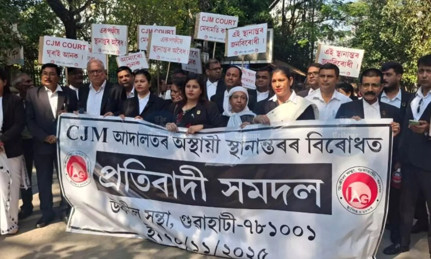 Lawyers association, Guwahati protesting against temporary shifting of CJM court to GAD building (Photo: AT)