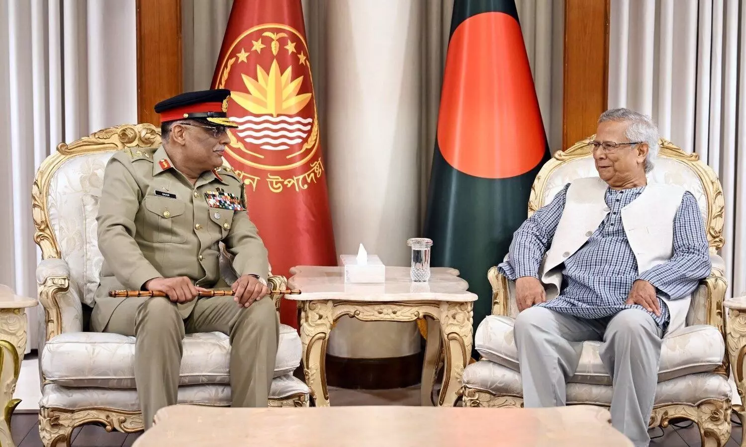 Visiting Chairman of Pakistan’s Joint Chiefs of Staff Committee, Gen Sahir Shamshad Mirza, paid a courtesy call on Chief Adviser Professor Muhammad Yunus