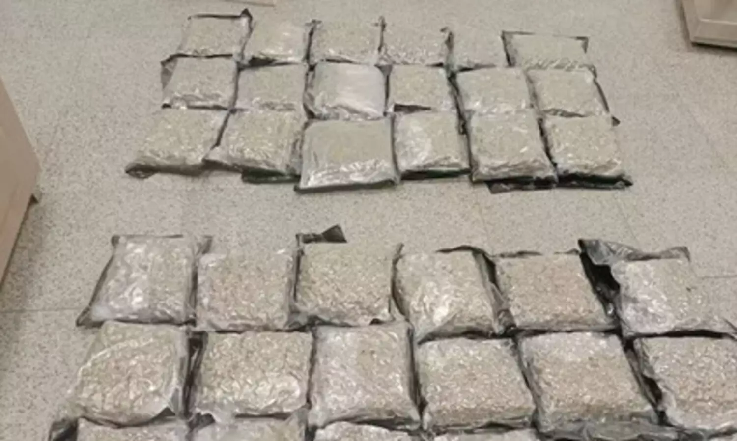 During scanning, officials recovered packets containing hydroponic ganja hidden inside the luggage. The total quantity of seized contraband was 14 kilograms.