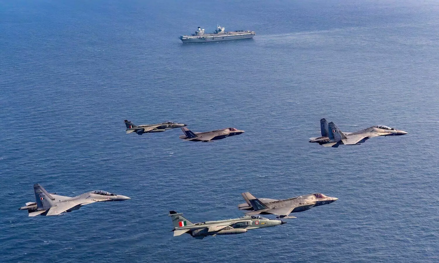 The exercise, conducted on October 14, featured IAF's Sukhoi-30 MKIs, Jaguars, AWACS, and AEW&C aircraft operating in coordination with the Royal Navy's F-35B fighter jets deployed from HMS Prince of Wales.