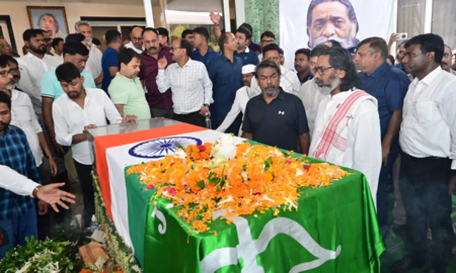 Leaders and supporters from across the country arrived in Ranchi earlier today to pay their last respects to the iconic leader, fondly known as 'Guruji'.