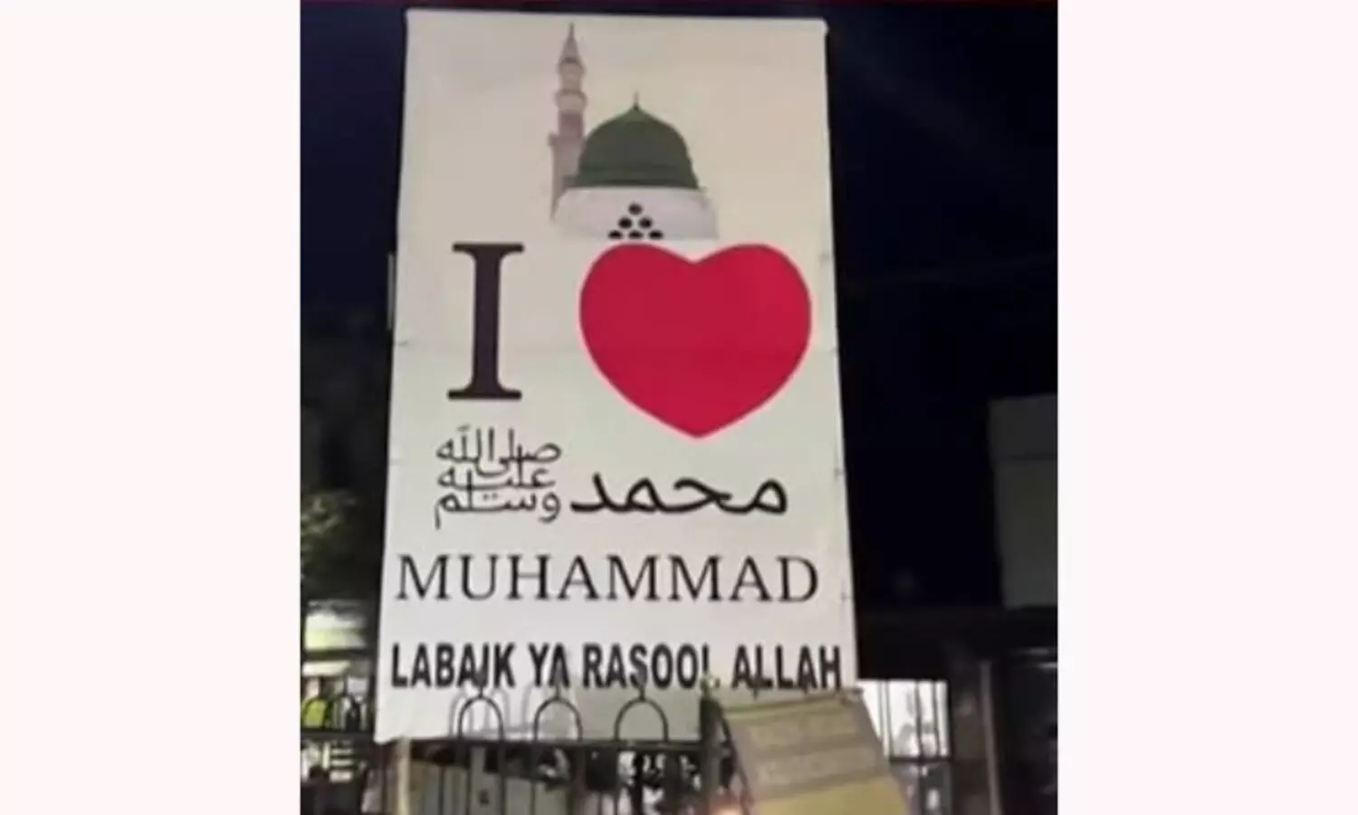 In another development, an 'I Love Muhammad' banner installed at Aland in Kalaburagi district was removed by jurisdictional police on Saturday.