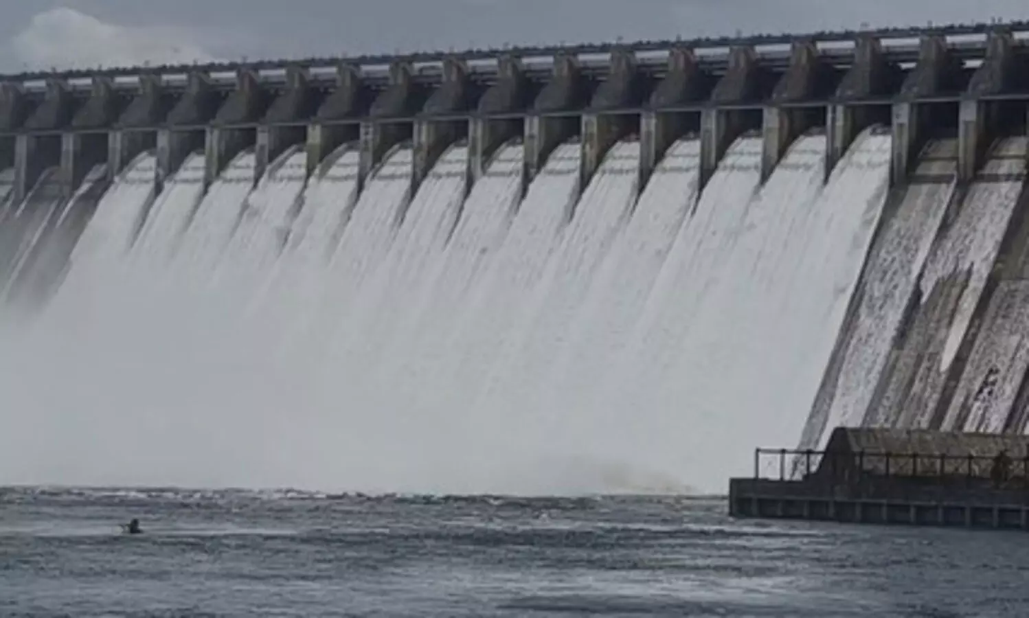 The Nagarjuna Sagar dam's fourteen crest gates were opened
