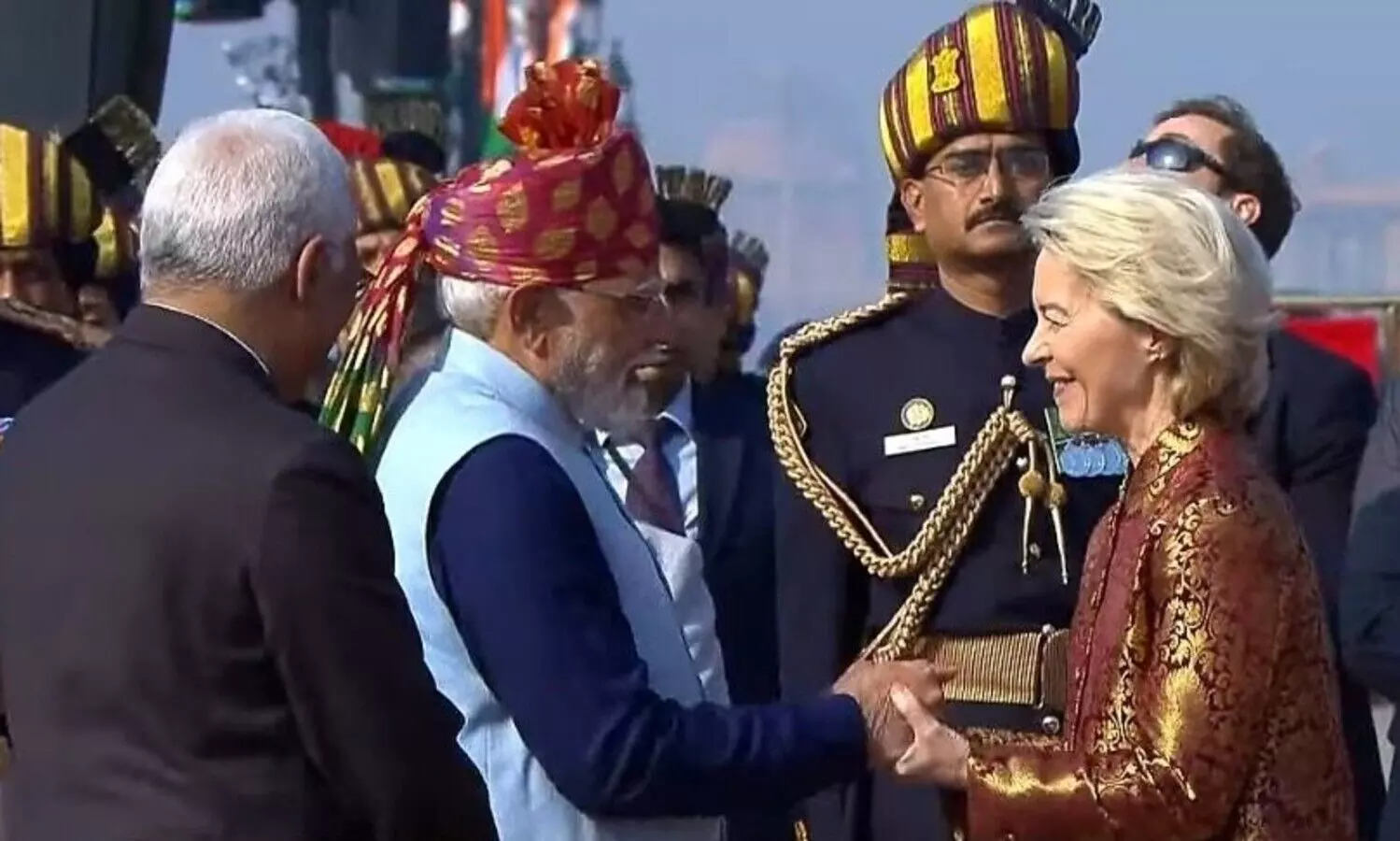 European Council President Costa and European Commission President von der Leyen witnessed the grand military parade and the cultural performances along with President Droupadi Murmu, Prime Minister Narendra Modi, members of the Union Cabinet, foreign diplomats and a host of other dignitaries.