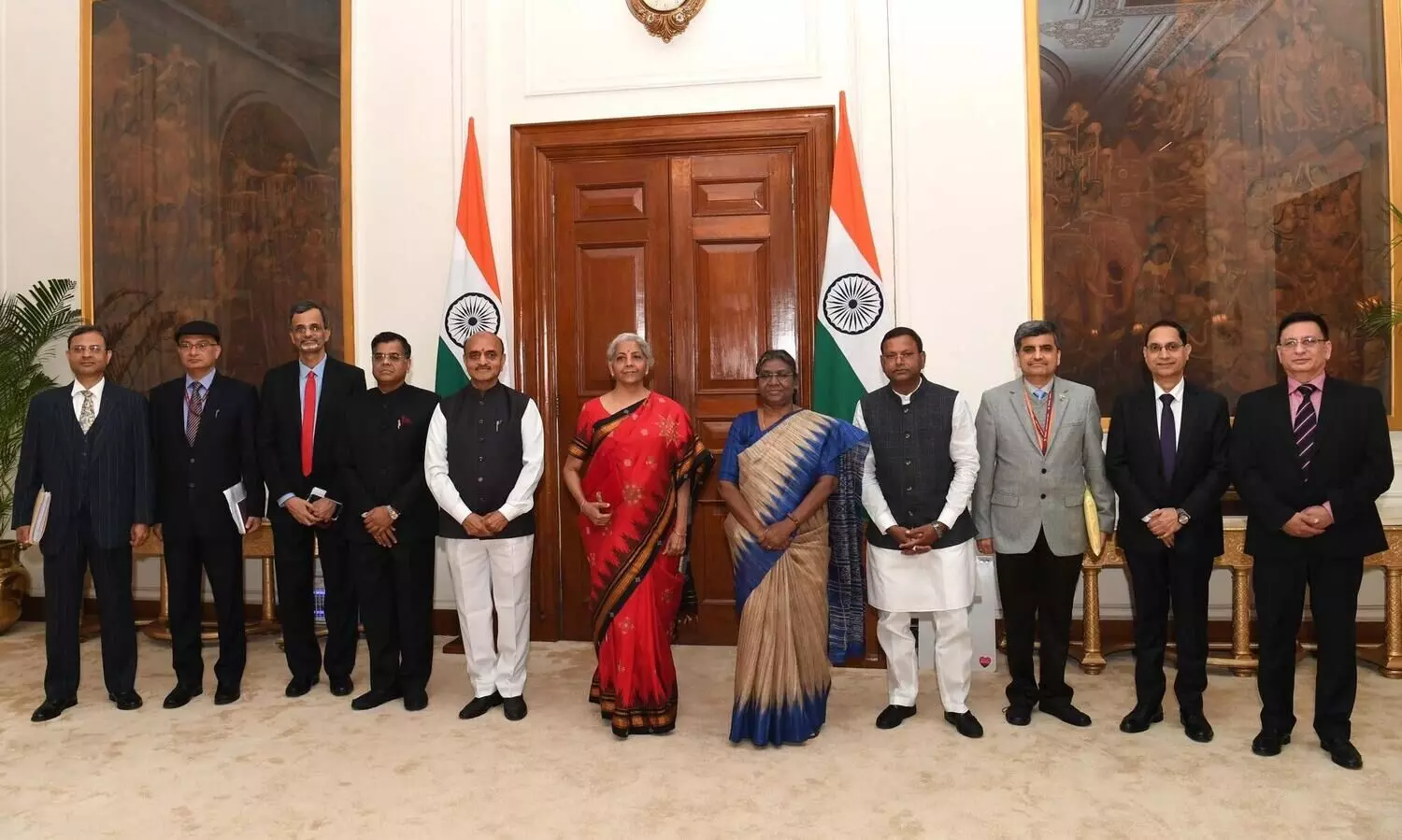 "Union Minister of Finance and Corporate Affairs Smt Nirmala Sitharaman, MoS Dr Bhagwat Kishanrao Karad, MoS Shri Pankaj Chaudhary and senior officials of the Ministry of Finance called on President Droupadi Murmu at Rashtrapati Bhavan before presenting the Union Budget 2023-24," the President tweeted.