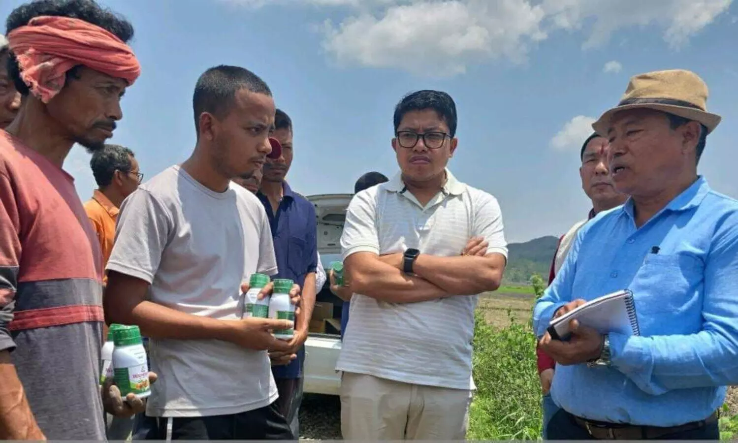 A file image of Peter Salam (Middle), Director of Agriculture, Manipur in a field visit interacting with farmers (Photo: @govt_of_manipur/x)