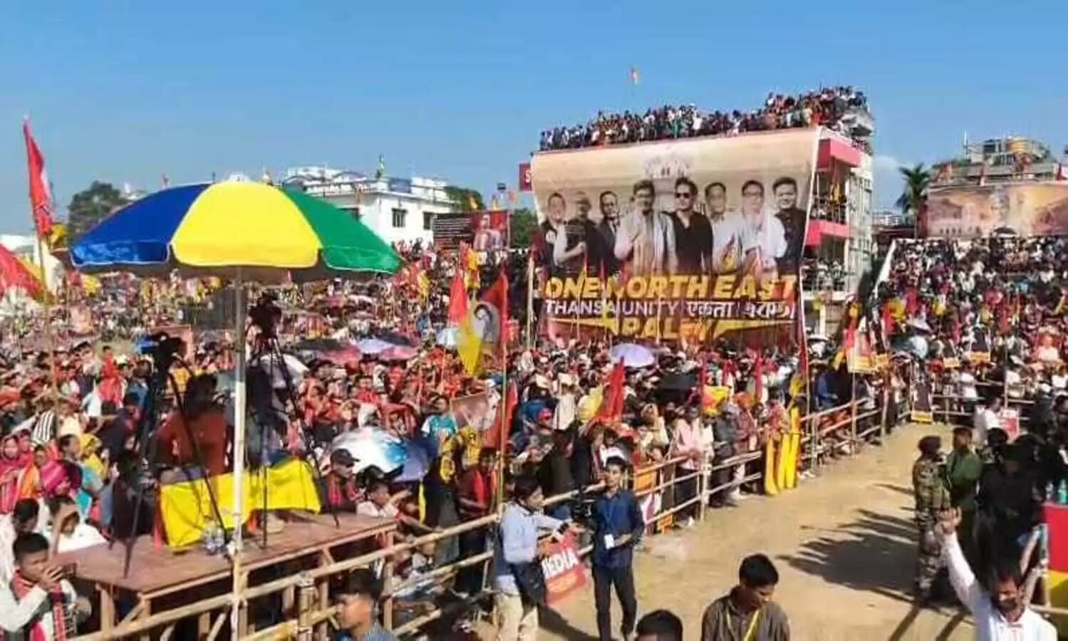Hemochandra Singh, former Manipur minister, Daniel Langthasa, founder of People's Party, Dima Hasao, Assam, JM Sangma, NPP national working president, Mmhonlumo Kikon, former BJP national spokesperson and former Nagaland minister, Ajoy Edwards, founder president, Indian Gorkha Janshakti Front, and RK Meghen, veteran leader from Manipur, attended the rally.