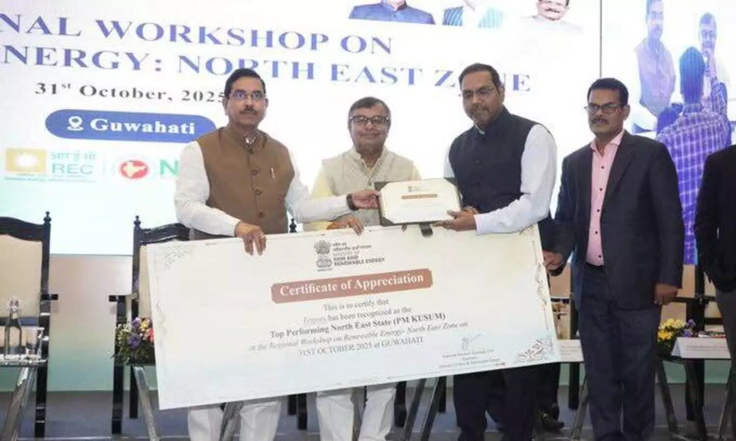 He further announced, "Today, Power Minister of Tripura, Ratan Lal Nath received the prestigious award from Union Minister for Renewable Energy Pralhad Joshi during the Regional Workshop held in Guwahati."