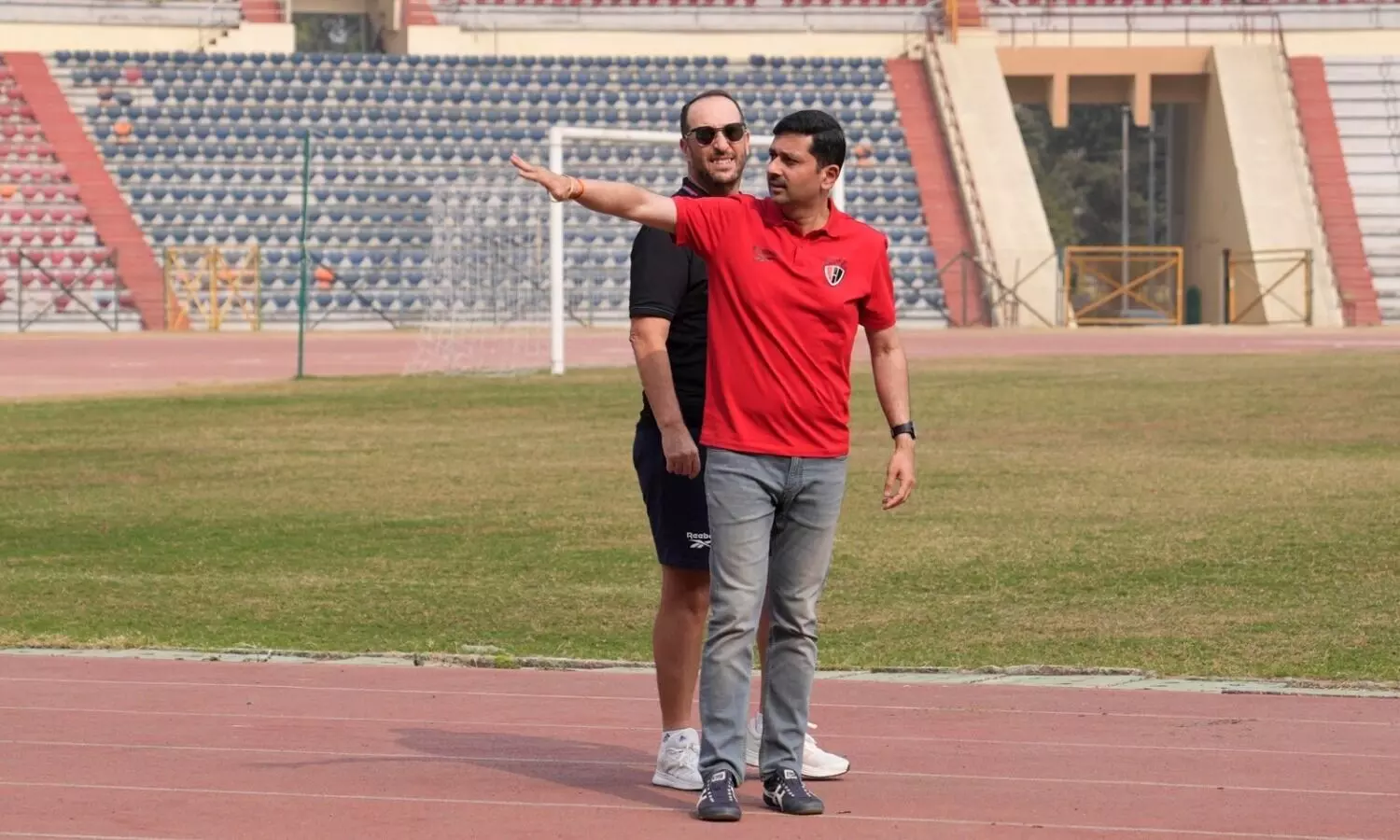 NEUFC CEO Mandar Tamhane and Head Coach Juan Pedro Benali at Sarusajai (AT Image)