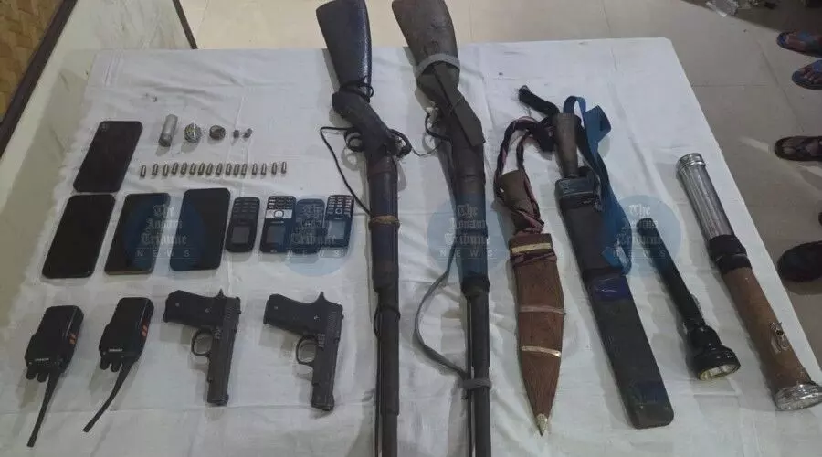 Tezpur, July 23: In a successful operation carried out on Sunday night at two separate locations in Rwnswndri village near Khawla Centre, along the Assam-Arunachal border under Dhekiajuli Police Station in Sonitpur district, the Sonitpur police recovered a cache of arms and communication devices.