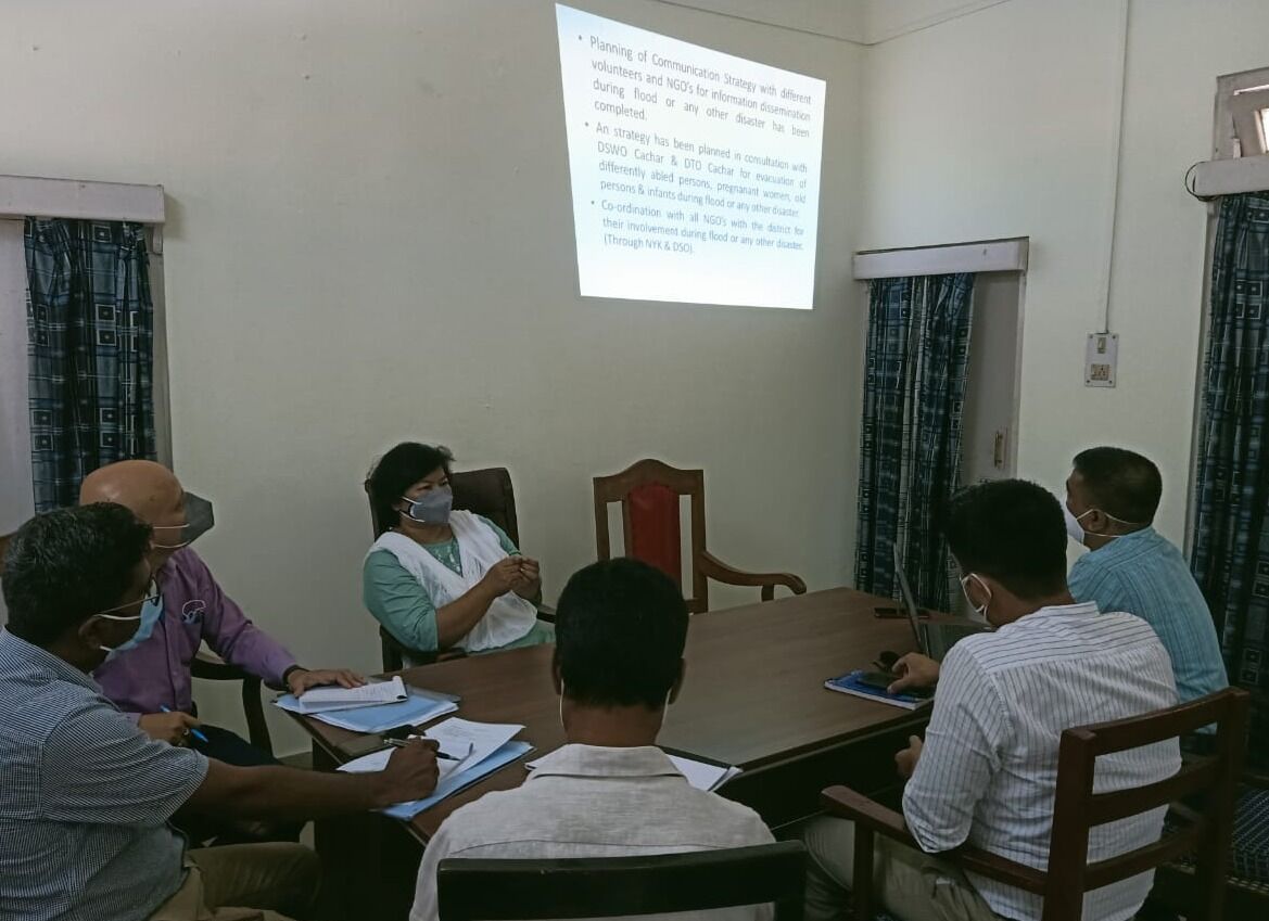 Presided over by J.R Lalsim, the Chief Executive Officer, District Disaster ManagementAuthority, Cachar, Nodal Officers from Assam State Disaster ManagementAuthority, (ASDMA) Guwahati Rajesh Dutta, Engineering Consultant (EG RiskManagement), ASDMA, Syed Sarik Rahman, PO(DM), Urban Development Department took part in the discussion. All CircleOfficers of the district; DPO, DDMA, Cachar; all Heads of LineDepartments, Inspector, NDRF and all Field Officers(Disaster Management) were also present in the meeting.