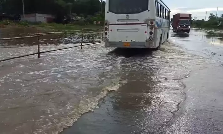 Following an intense downpour on Friday night the National Highway completely submerged under water.