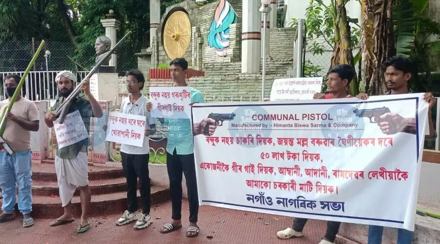 “We don't need a communal pistol. We need irrigation to save our dry agricultural fields, we need jobs, we need land rights, like what the government is giving to big corporate houses," NNS Secretary Birinchi Bora told the press.