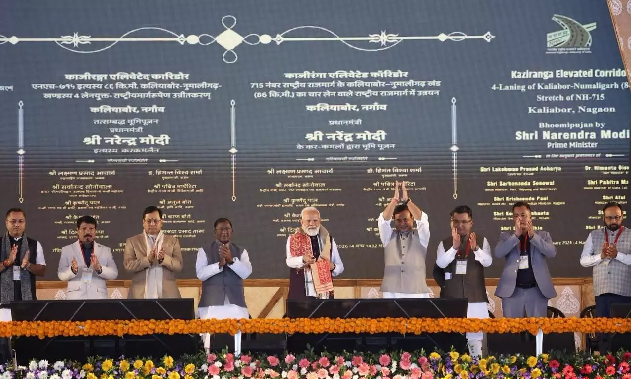 Addressing a public gathering at Kaliabor, the Prime Minister said the Rs 6,957-crore elevated corridor near Kaziranga National Park would ensure uninterrupted wildlife movement while strengthening road connectivity between Upper Assam and the rest of the region.