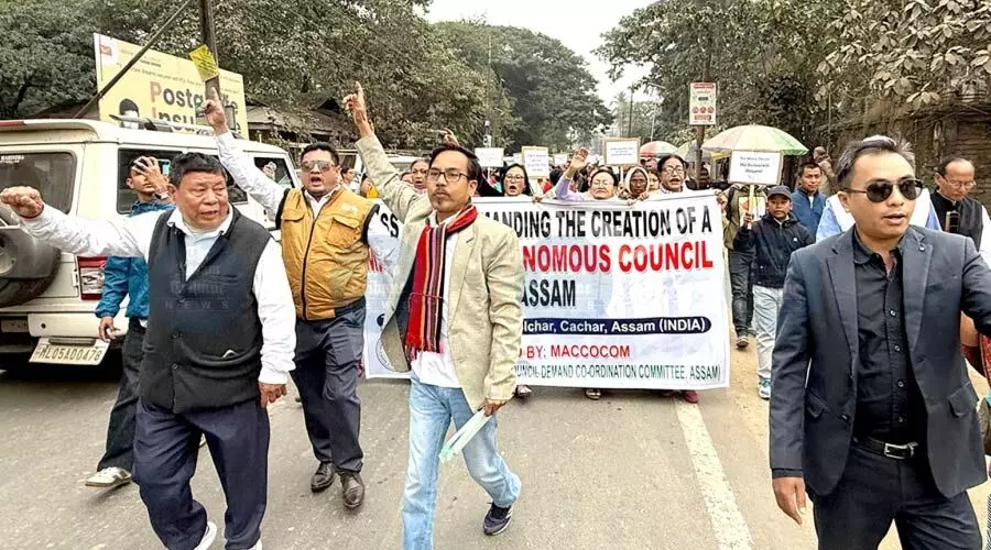 Silchar, Jan 7: A sizeable gathering of members of the Manipuri community from different parts of the State, mainly covering the three districts of the Barak Valley, held a massive rally in Silchar on Monday, demanding the immediate creation of a Manipuri Autonomous Council in Assam.