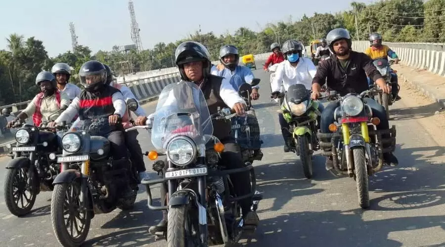 Setting a personal example, Suklabaidya was seen riding a two-wheeler wearing a helmet along with his son, Utpal Suklabaidya, urging citizens to strictly follow traffic rules and adopt safe driving habits.