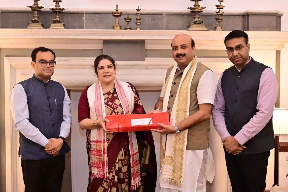 Additionally, a sanchipat manuscript of ‘Geet Govinda’, originally composed in Sanskrit by Jayadeva and translated to Assamese by poet Kabiraj Chakravarti in the royal court of Swargadeo Rudra Singha and donated by Shri Suren Phukan of Jorhat to the archives of Srimanta Sankardev Kalakshetra, was also been presented to Rashtrapati Bhavan library for its preservation and display.