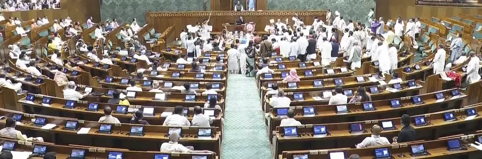 The Lok Sabha witnessed particularly tense scenes as Opposition members stormed the Well of the House, raising slogans and throwing pamphlets, prompting Speaker Om Birla to intervene sharply.