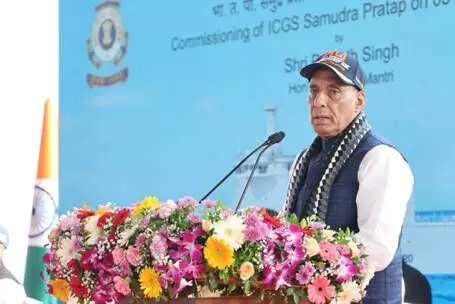 Panaji, Jan 5: Defence Minister Rajnath Singh commissioned the Indian Coast Guard's (ICG) first indigenously designed and built pollution control vessel 'Samudra Pratap' in Goa, on Monday.