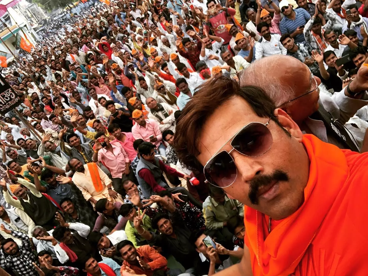 The Bhojpuri superstar and Gorakhpur MP was in Noida on Sunday to campaign for BJP's sitting MLA Pankaj Singh, who is again contesting the election as the party's candidate.