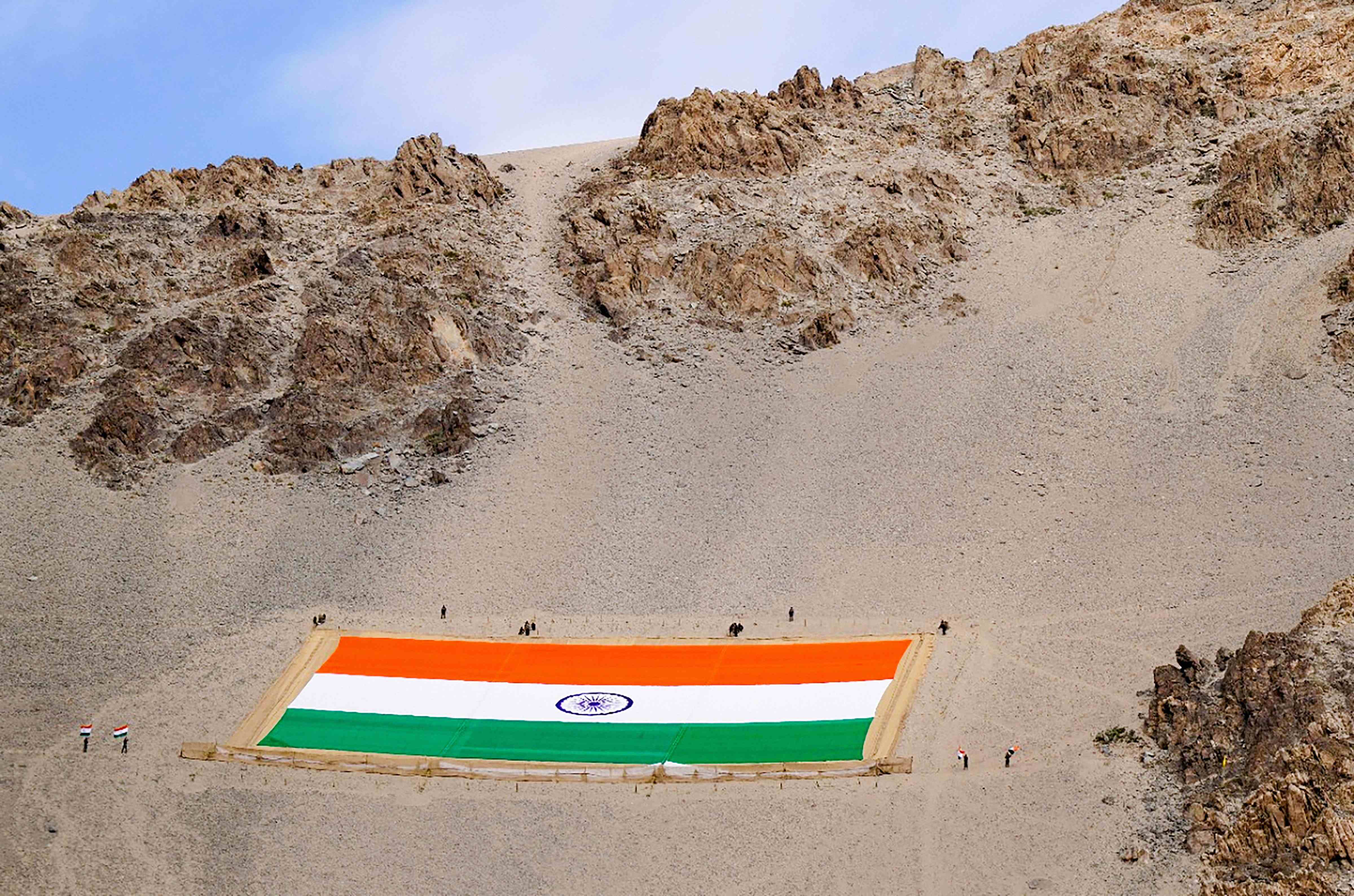 "The flag which was unfurled is the largest hand woven and hand spun cotton Khadi Flag ever manufactured in India, measuring 225 ft by 150 ft and weighing 1,000 kg," the army said.