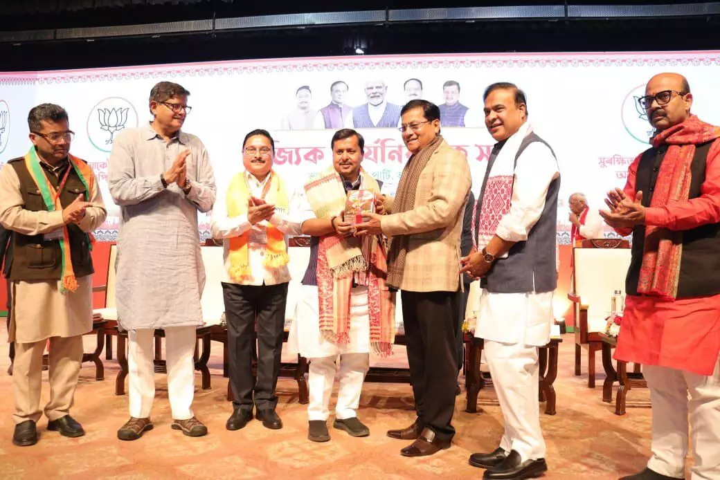 A file image of BJP national working president Nitin Nabin (centre) during his recent visit to Guwahati. (Photo:@sarbanandsonwal/X)