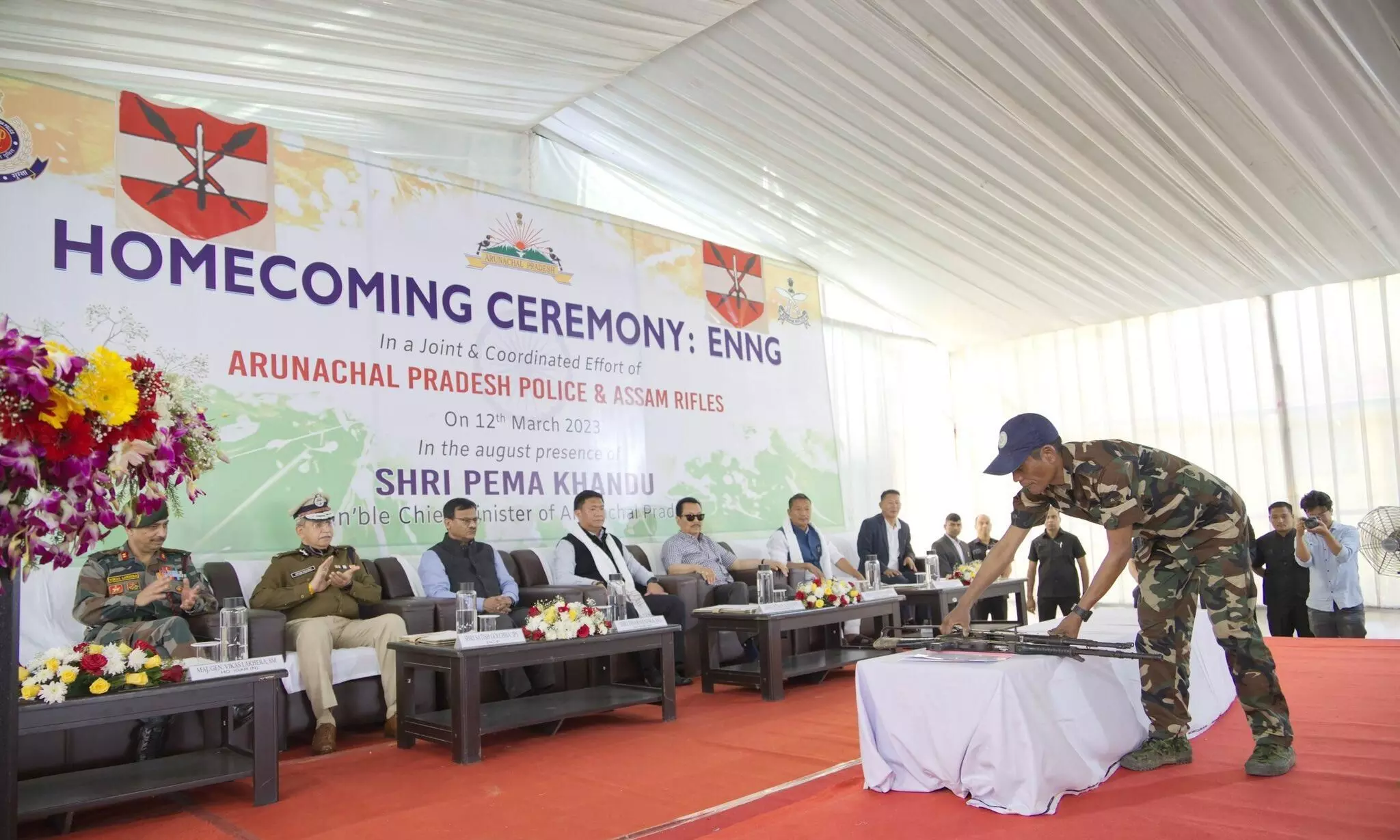 Guwahati, March 12: At least 15 active cadres including the president of rebel outfit Eastern Naga National Government (ENNG) laid down arms in front of Arunachal Pradesh CM Pema Khandu, civil administration, top police officials and Assam Rifles officials in Itanagar today.